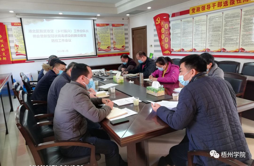 陈春潮(前一)主持召开工作队会议布置开展疫情防控工作
